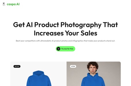 Want to make your products stand out from the competition? Try caspa AI for free and generate ultra-realistic photos and infographics of your products with human models using AI product photography. Edit, generate, upscale and more.