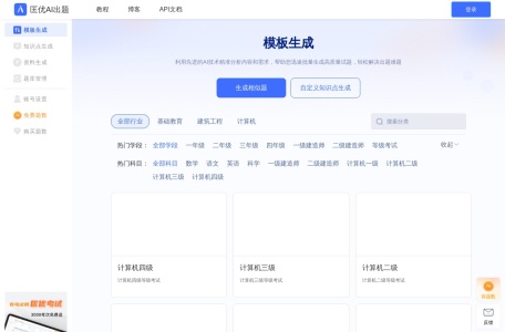 匡优 AI 出题是一款利用人工智能帮助用户根据需求生成试题的网站。我们提供两种模式:模板出题和资料出题。模板出题内置了约 30 多套模板,涵盖数学、语文、英语等基础教育学科,也支持自定义自识点出题;资料出题可以根据用户上传的 Word 文档内容生成试题,帮助教师和学生高效备考。支持生成常用题型,一次可生成超100 题。