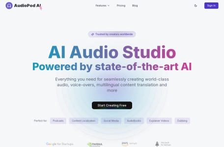 AI-powered audio processing platform for voice cloning, noise reduction, and audio translation.