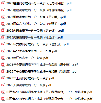 2025高考一分一段表 全国一分一段表汇总中